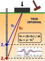 剪切波速Vs是通过一个公式得出,即两接收器离震源的距离差除以两个接受器接受到同一次波形的时间差。