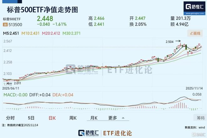 A500ETF基金(512050)是交易最火爆的中证A500ETF,截至11月14日,年内日均成交额为41.08亿元,且产品的管理费率+托管费率合计为“0.2%/年”,成本处于市场最低档。